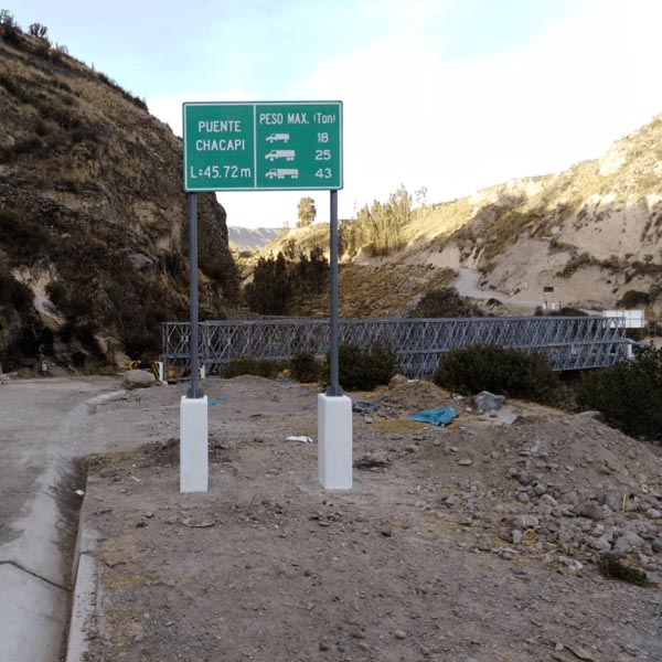 Instalación del puente Modular Provisional ACROW longitud del puente tiene 30.48 Metros, ubicado en el departamento de la libertad.